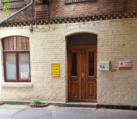Durch die Toreinfahrt durchgehen und klingeln.